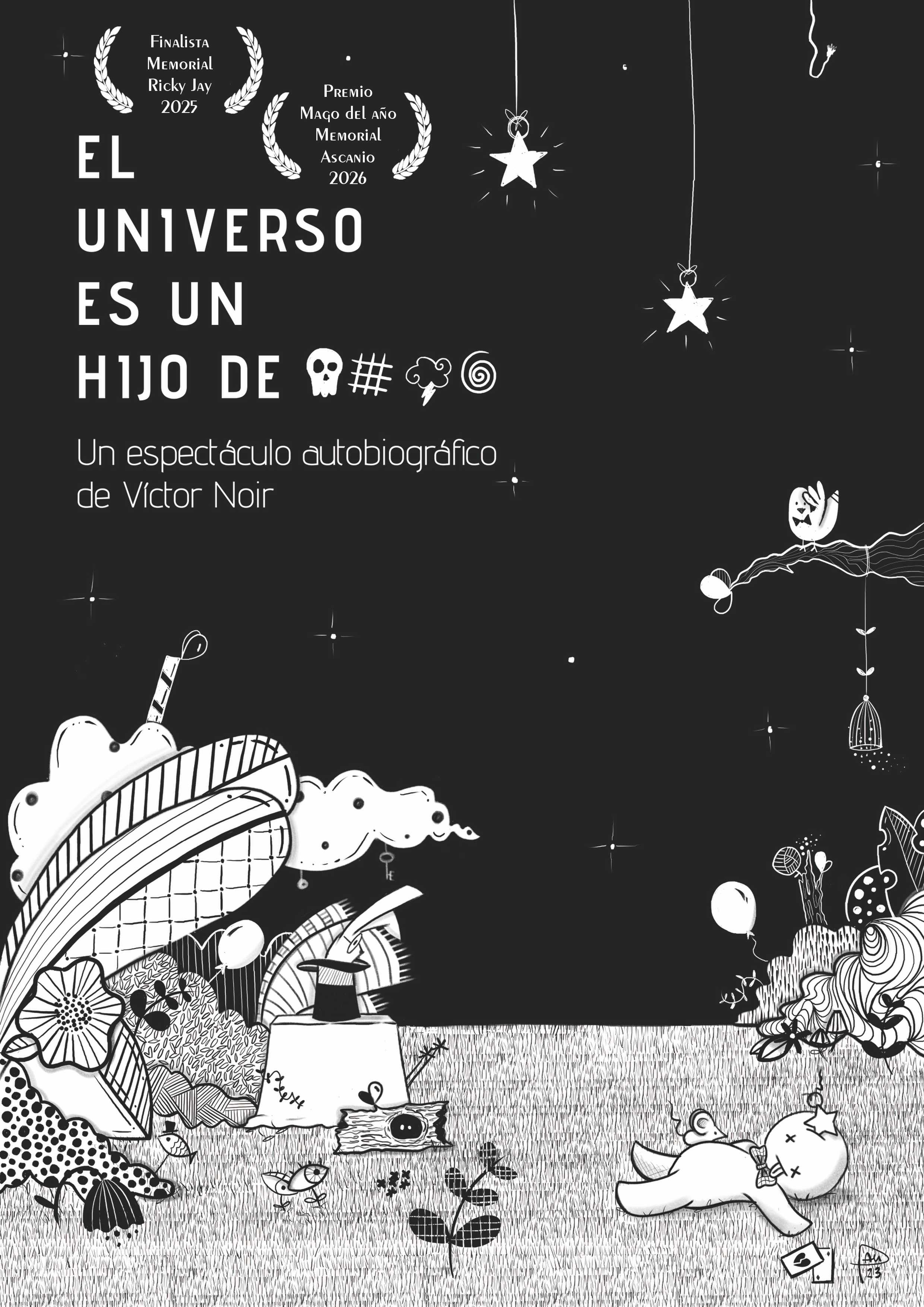 El más nuevo y premiado espectáculo de Víctor Noir. Una sesión de magia para un pequeño grupo privilegiado que descubrirá que el Universo parece tener preferencia por hacer la vida imposible a nuestro sufrido protagonista.